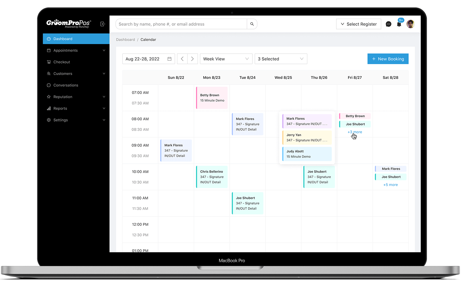 GroomPro software comes with the industry's leading online booking app. Add a direct booking link to your website or instagram page and you can scheudle appointments while you're sleeping, for free!